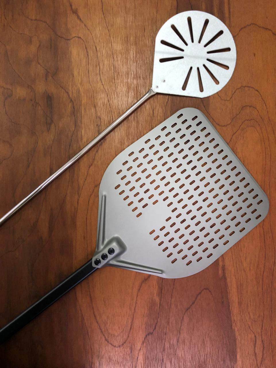 A conexão entre cabo e cabeça é reforçada por três grandes rebites alinhados, assegurando firmeza, estabilidade e ausência de vibrações, proporcionando maior conforto durante o uso. Além disso, a superfície perfurada diminui o atrito e elimina o excesso de farinha, resultando em pizzas mais limpas ao entrar no forno.